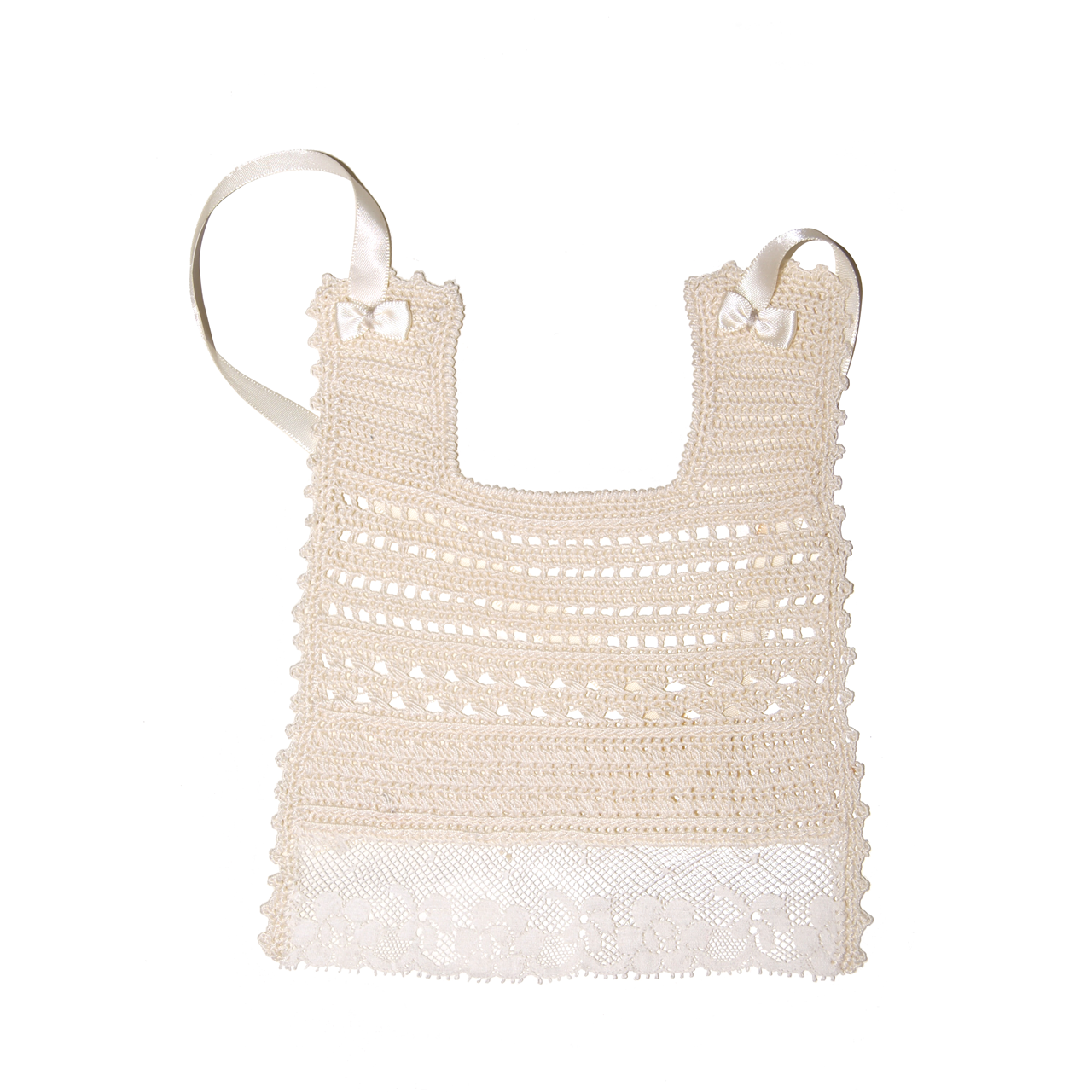 Babero vintage elaborado y confecionado en hilo de algodón color beige de 1º calidad y puntillas de balencié o allensón .