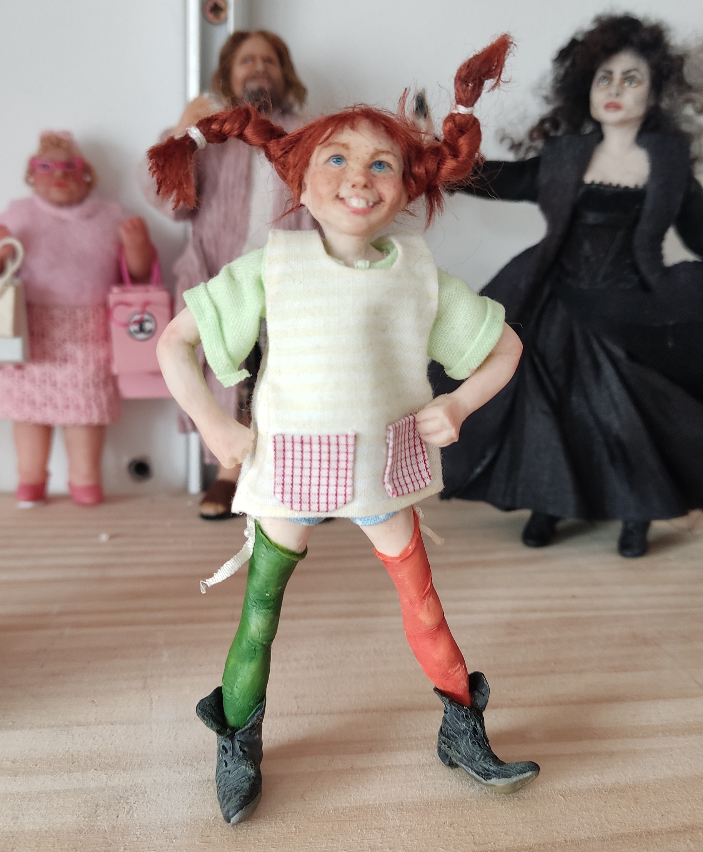 Reproduce en miniatura personajes reales, retratos, o bien personajes que la propia solicitante crea. Asimismo, realiza reproducciones de casas en miniatura, escenas…