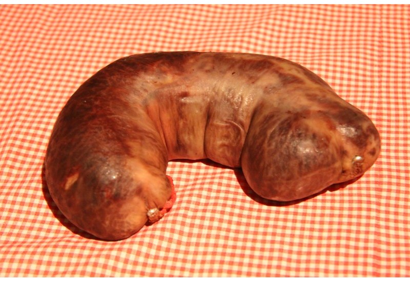 Elaboración de morcilla salada y dulce de manera artesanal.